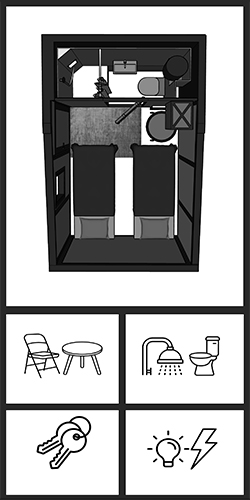 Door het opvouwbare systeem gaan de kamers makkelijk op transport.