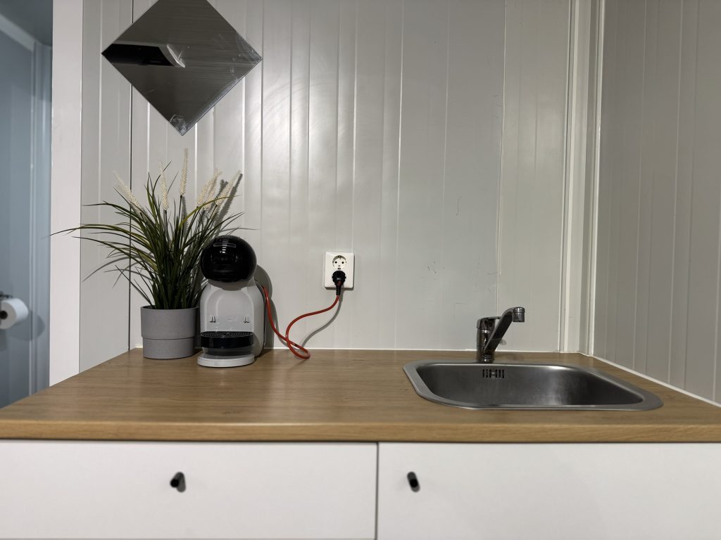 De badkamer is voorzien van een toilet, douche en wastafel, zodat je kunt genieten van alle comfort en gemakken van thuis, zelfs tijdens de verbouwingsperiode. Of het nu gaat om een snelle douche in de ochtend of een lange ontspannende douche na een lange dag, onze Flexstudio’s zijn ontworpen met jouw comfort in gedachten.